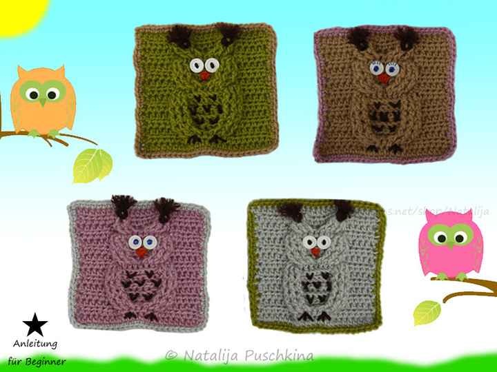 Sguare Eule für kuschelige Decken, Bunte Decken für Kinderzimmer oder Kinderwagen, für Kissen, Taschen, Mützen, Westen... und und und... ggf. dikere Wolle nehmen, mit Geduld tanken und tolle Teppich für Kinderzimmer häkeln.