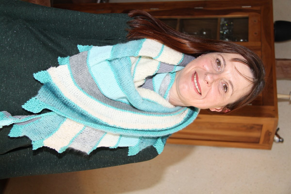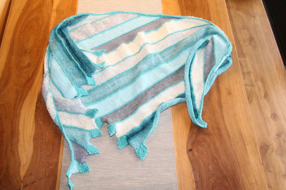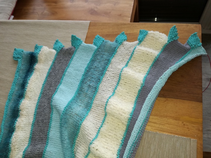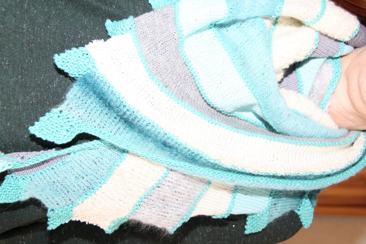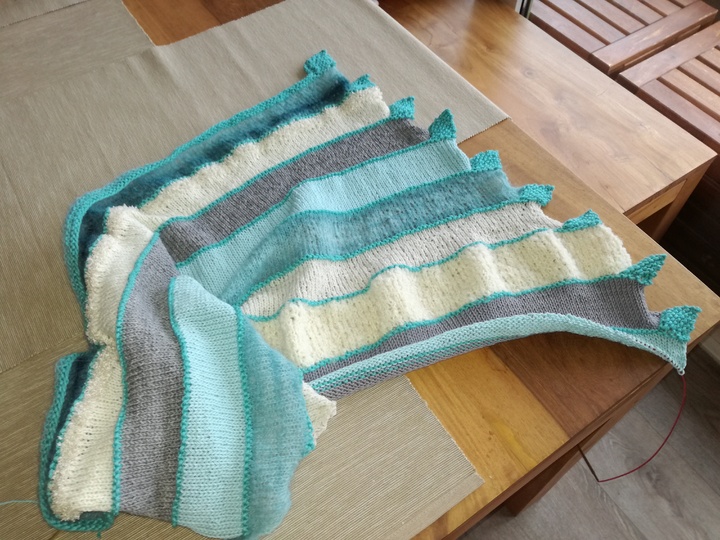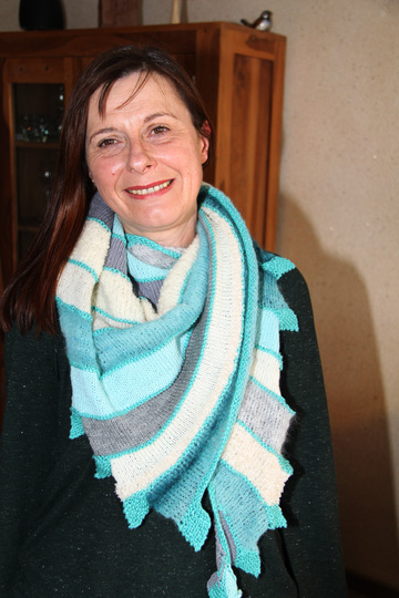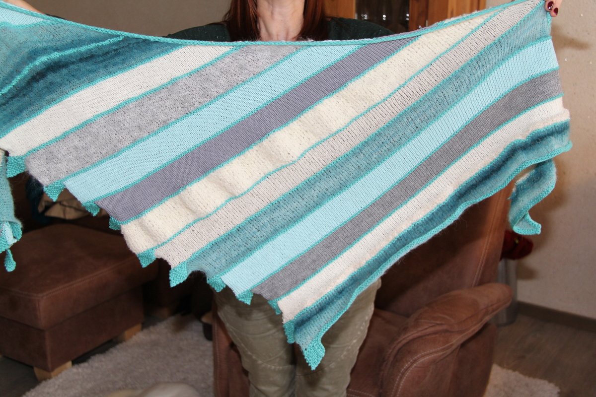 meinen Kuschedrachen habe ich mich schon beim Stricken verliebt....mal ein kuscheliges Mohairgarn, dann glatte Baumwolle oder Bouclè, sehr abwechsungsreich . Man fiebert immer schon dem nächsten Garnwechsel entgegen. Ich bin mir ganz sicher, euch wird es genauso gehen. Man will es gar nicht mehr abnehmen. Es ist im Stil eines Drachenschwanzes gestrickt und auch bestens für Anfänger geeignet. Am Anfang hat man zwar eine relativ hohe Maschenzahl und die ersten Reihen brauchen etwas Zeit und Geduld, aber mit jedem Streifen habt ihr weniger Maschen auf der Nadel und wenn es auf das Ende zugeht (dann, wenn man es eh nicht mehr erwarten kann, bis das neue Stück endlich fertig ist), geht es ratzfatz.....für die kürzeren Streifen lassen sich auch sehr gut Wollrest verarbeiten