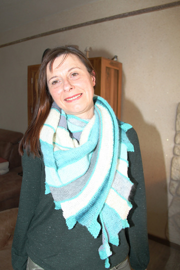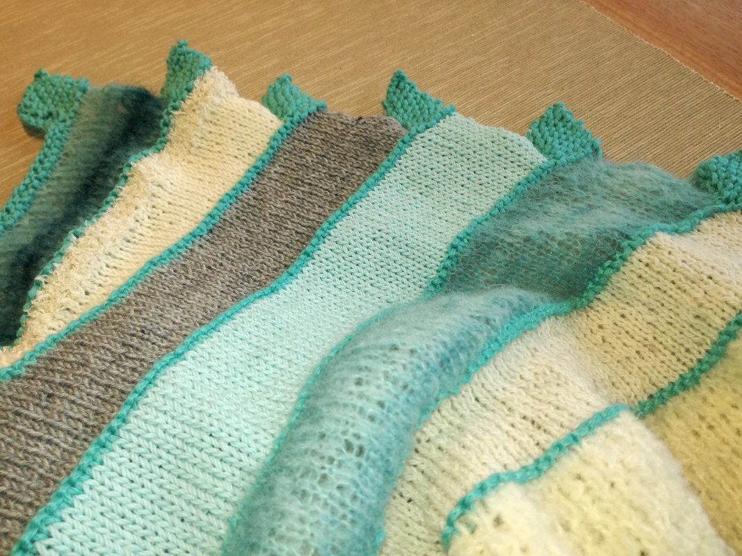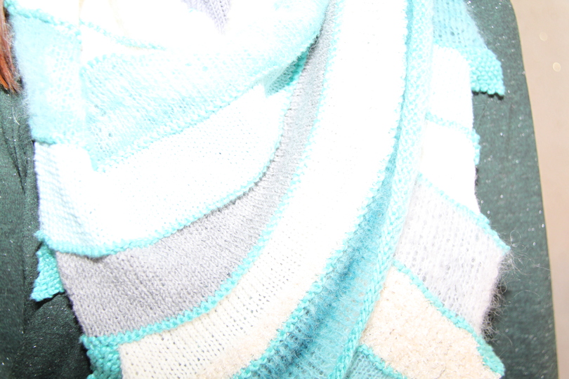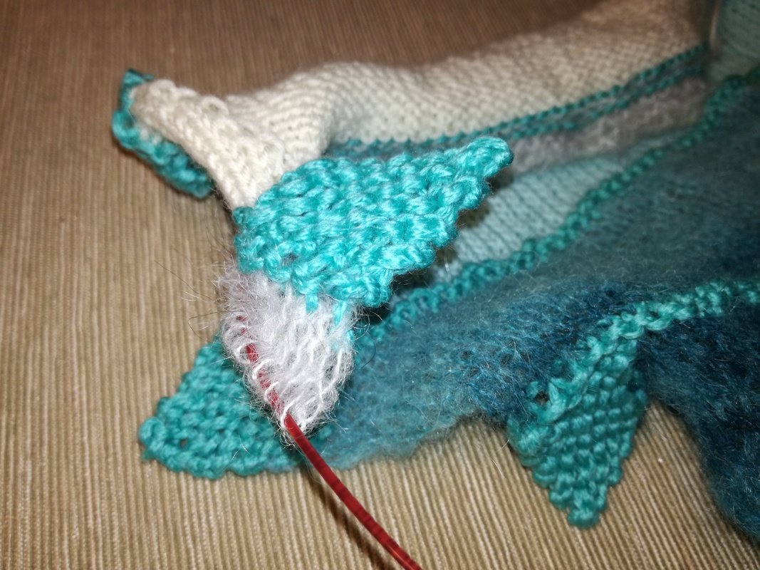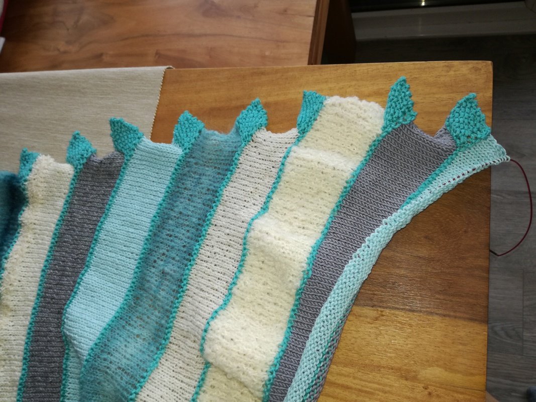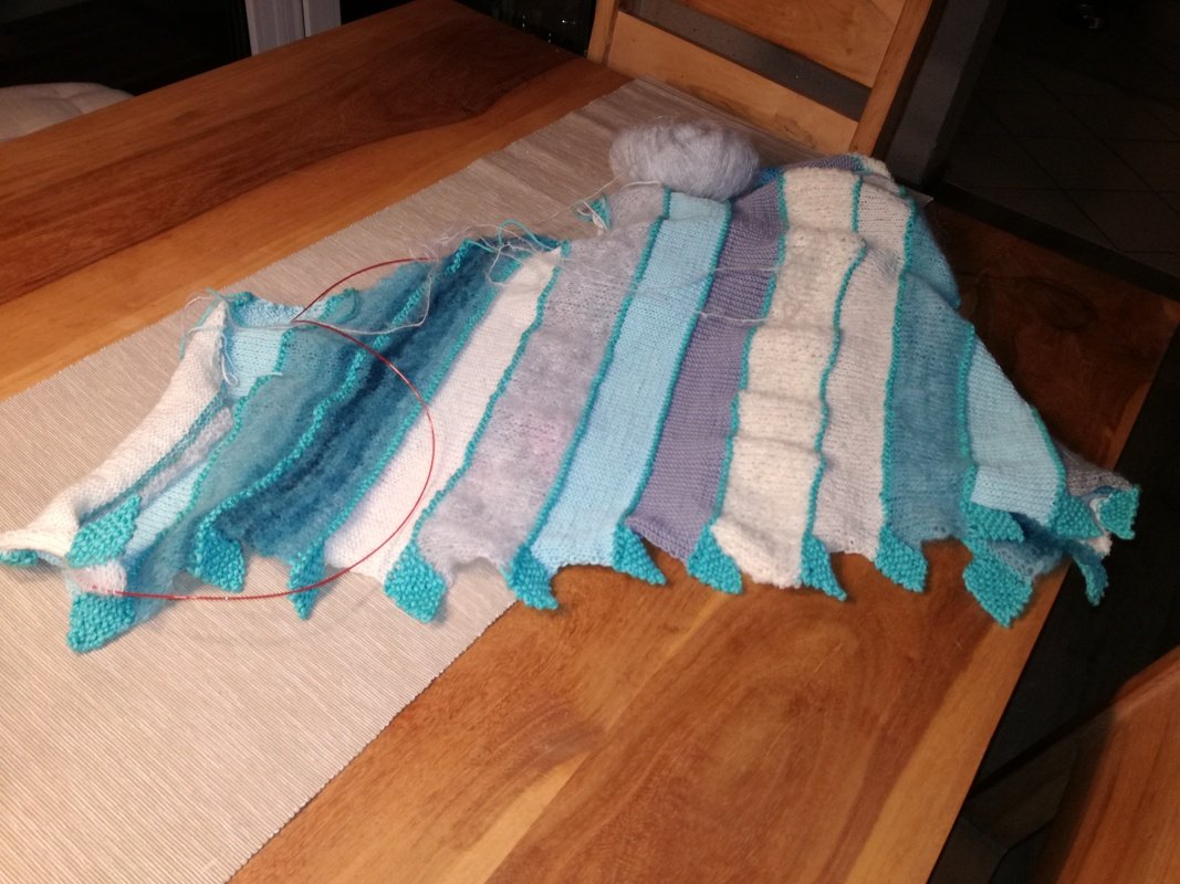 meinen Kuschedrachen habe ich mich schon beim Stricken verliebt....mal ein kuscheliges Mohairgarn, dann glatte Baumwolle oder Bouclè, sehr abwechsungsreich . Man fiebert immer schon dem nächsten Garnwechsel entgegen. Ich bin mir ganz sicher, euch wird es genauso gehen. Man will es gar nicht mehr abnehmen. Es ist im Stil eines Drachenschwanzes gestrickt und auch bestens für Anfänger geeignet. Am Anfang hat man zwar eine relativ hohe Maschenzahl und die ersten Reihen brauchen etwas Zeit und Geduld, aber mit jedem Streifen habt ihr weniger Maschen auf der Nadel und wenn es auf das Ende zugeht (dann, wenn man es eh nicht mehr erwarten kann, bis das neue Stück endlich fertig ist), geht es ratzfatz.....für die kürzeren Streifen lassen sich auch sehr gut Wollrest verarbeiten