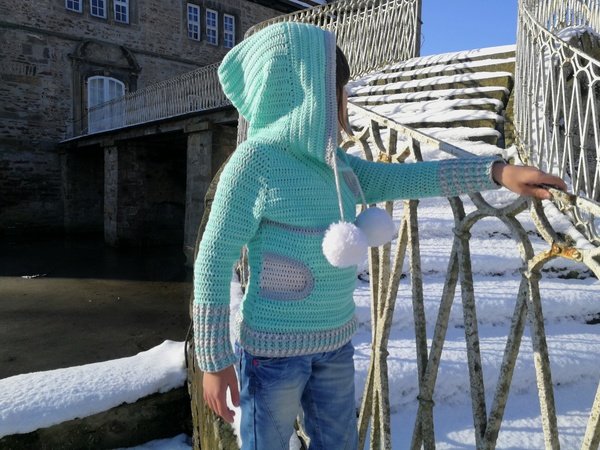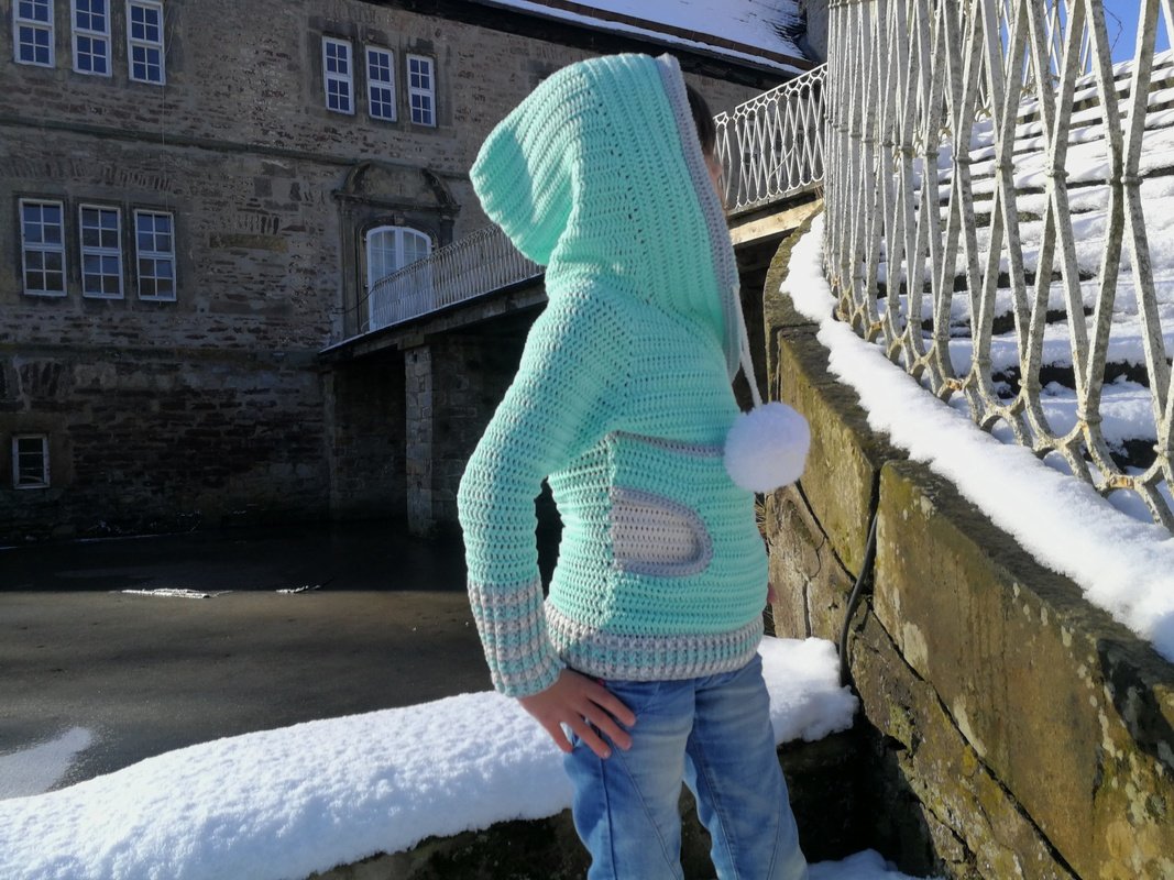 Diesen Pullover kannst du nicht nur für Kinder, sondern auch für Erwachsene häkeln. In meiner Anleitung gebe ich dir viele Hilfestellungen, sodass sich der Pullover in jeder Größe 98/104 bis 158/164 für Kinder, sowie XS bis XL für Erwachsene anfertigen lässt.