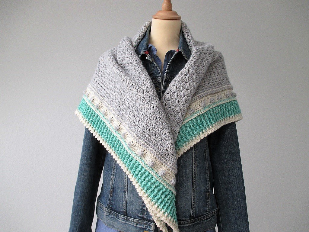 Alternativ kannst Du die Scheepjes Stone Washed verwenden. Aber natürlich eignet sich auch jedes andere Garn mit passender Nadelstärke (z.B. Farbverlaufswolle). Auf dem letzten Foto wurde das Tuch mit einem 4-fädigem Bobbel (1000 m) und NS 3,5 gehäkelt.