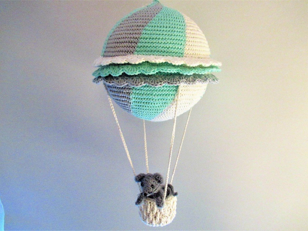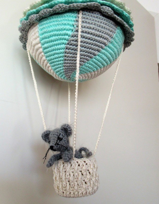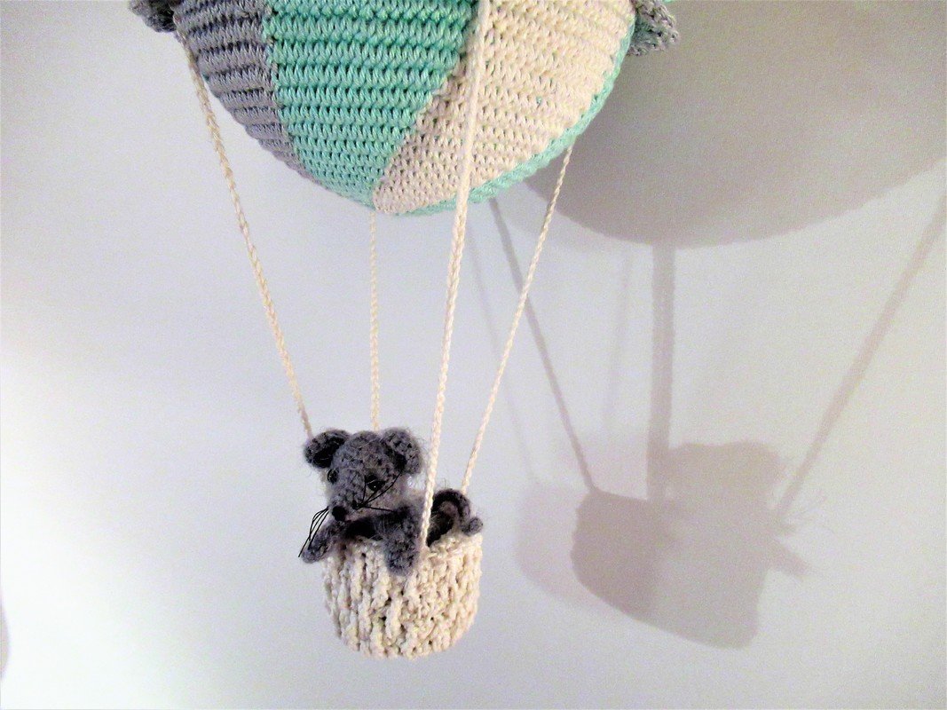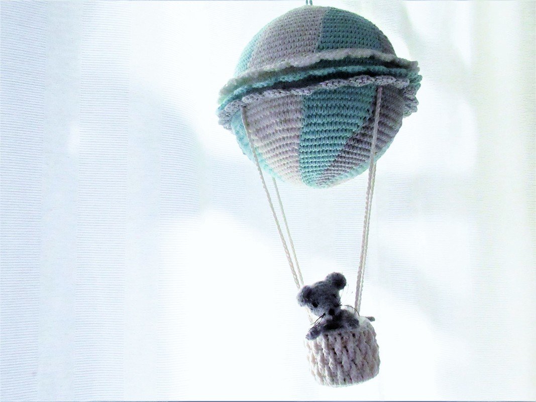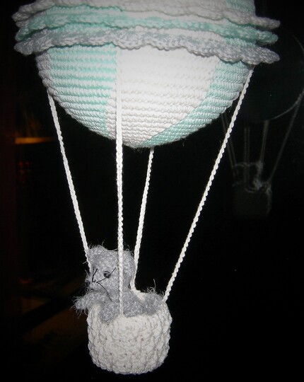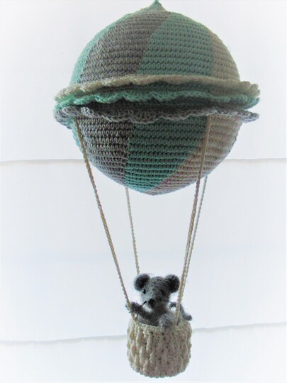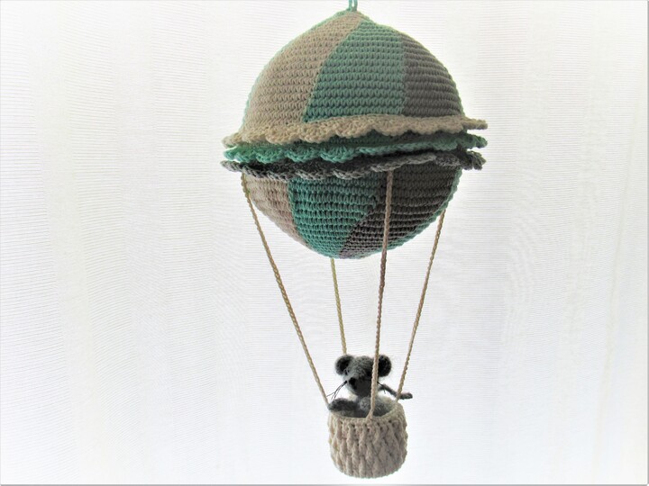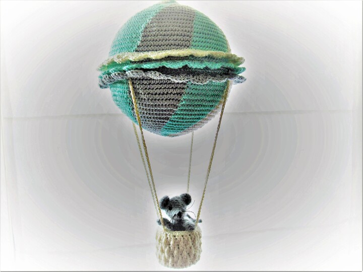 Die kleine Maus ist 9 cm groß, ihr Ballon hat einen Durchmesser von 15 cm. Eine hübsche Fensterdekoration für alle mit Fernweh!