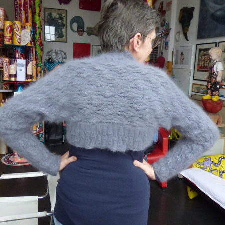 Dieser Ärmelschal macht jedes Sommer-Shirt wintertauglich und bezaubert durch das wunderbare Ajourmuster “Flammende Herzen”.