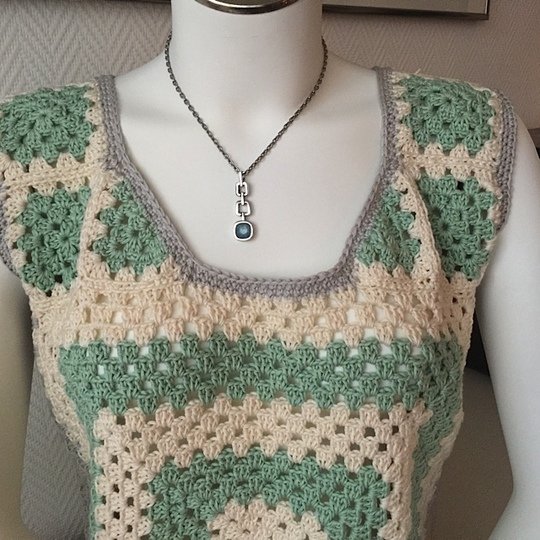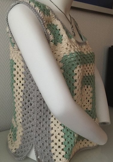 Dieses wunderschöne Sommer Top besteht aus mehreren Granny´s und wird später nur noch zusammen genäht und schön umrandet. Perfekt, denn man kann auch mal schnell unterwegs ein oder mehrere Granny´s häkeln.