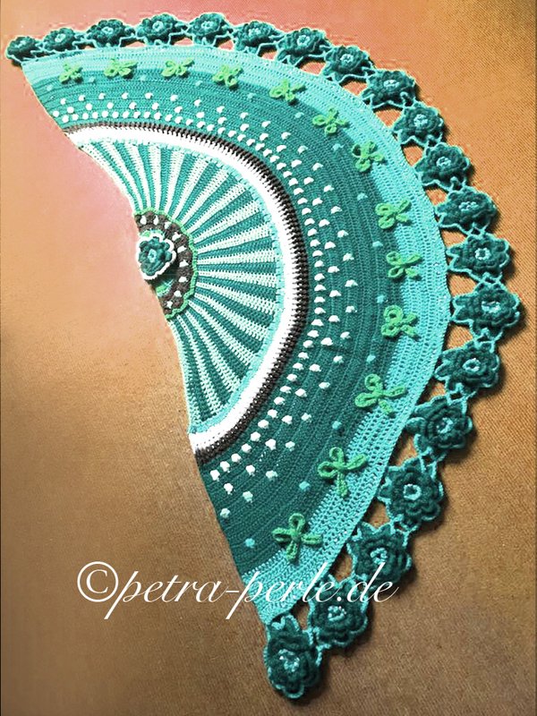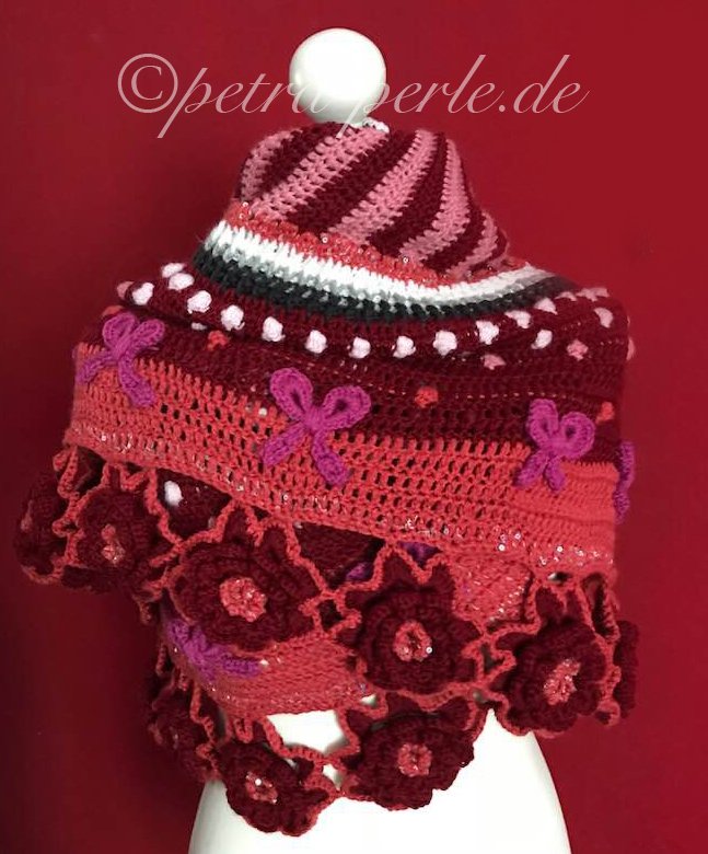 Dieses „Traumtuch“ ist mir tatsächlich im Traum erschienen. Da ich ja seit 3 Jahren fast nichts anders mache, als zu Handarbeiten, ist es auch kein Wunder, wenn ich davon Träume. Schon viele meiner Anleitungen sind so entstanden! Praktisch, gell? Doch diese Tuch ist wirklich traumhaft! Ich bin sehr glücklich darüber und dankbar.