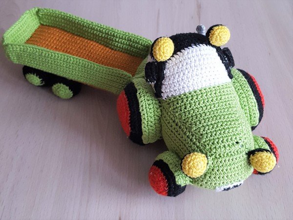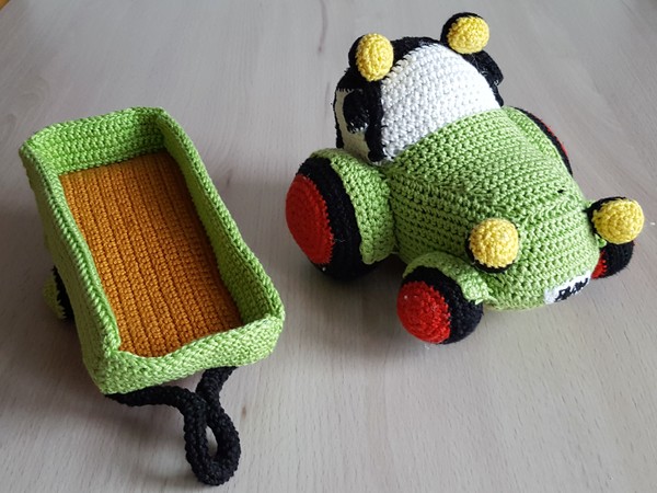 Um diesen niedlichen Traktor zu häkeln, brauchst du folgende Sachen.