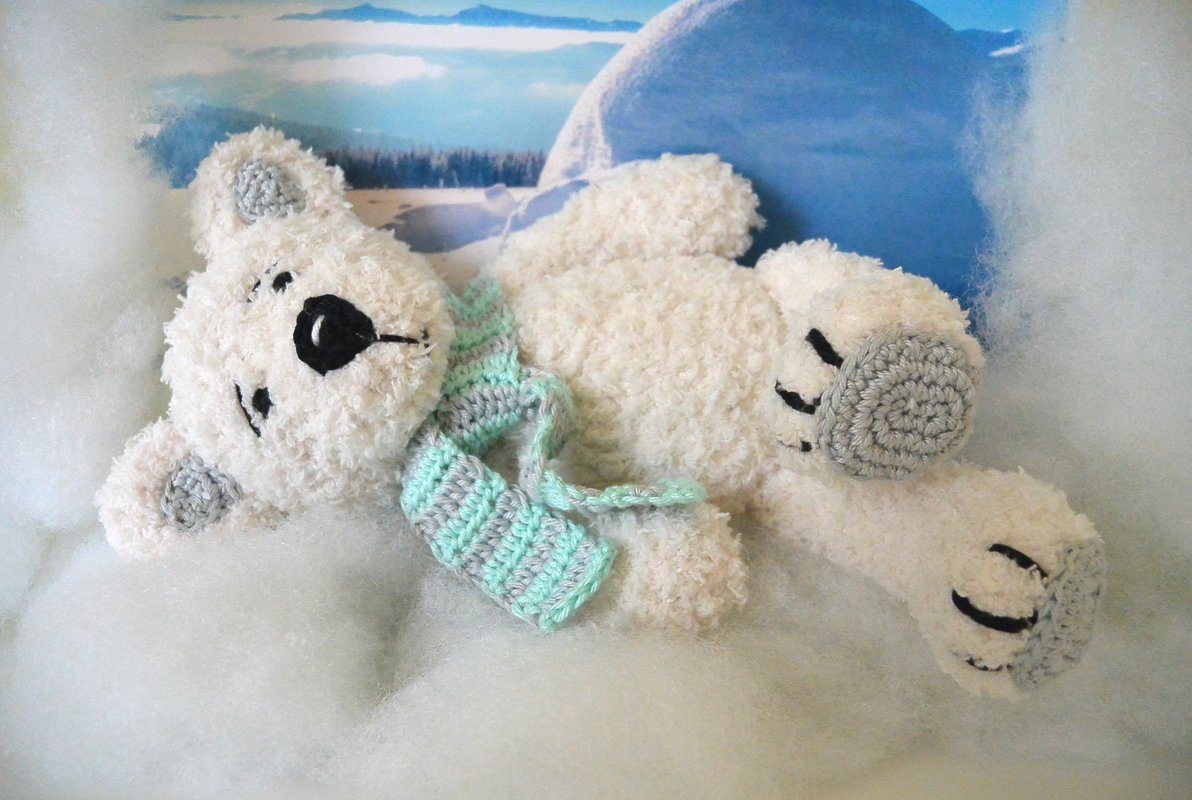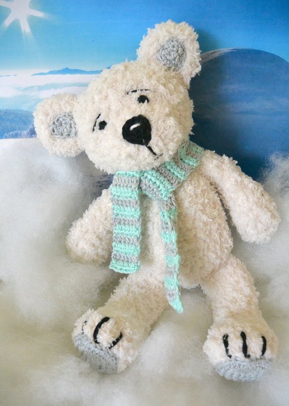 .... Emil Eisbär lebt am Nordpol und da kann es manchmal sogar einem Bär mit dickem Fell kalt werden und er braucht einen schönen warmen Schal... wobei es seinem Gegenüber - durch seinen Blick - sicher gleich warm ums Herz wird....