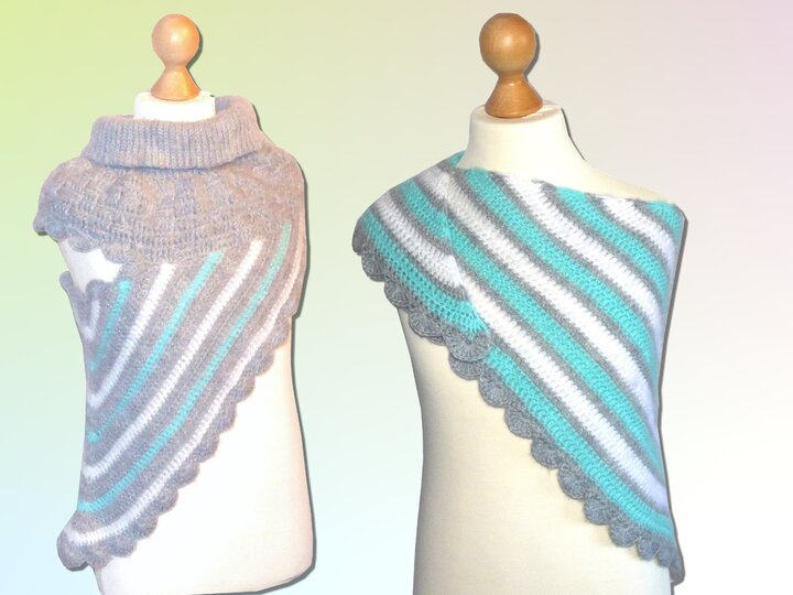 Mit diesem Anleitungsset bekommst Du das Dreiecktuch easy double und den dazu passenden Katniss cowl easy double.