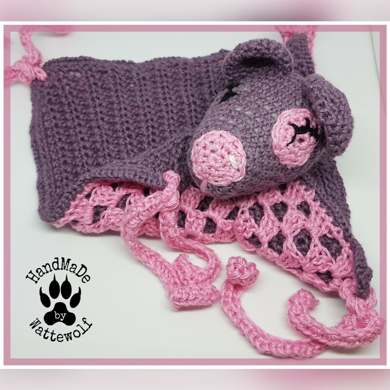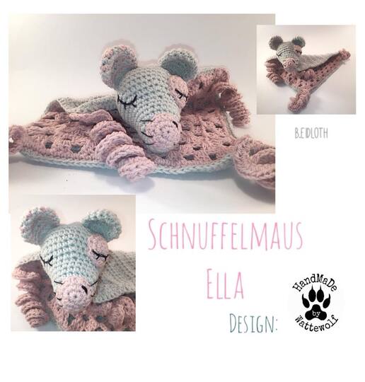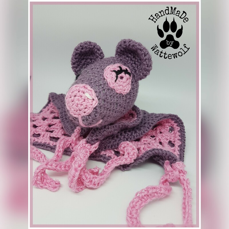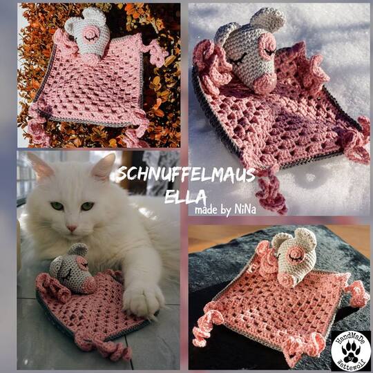 Schnuffelmaus Ella ist mit der vorgegebenen Wolle ca. 26 cm groß. Dies variiert natürlich je nach Wolle, Nadelstärke und ob du fest oder locker häkelst.
