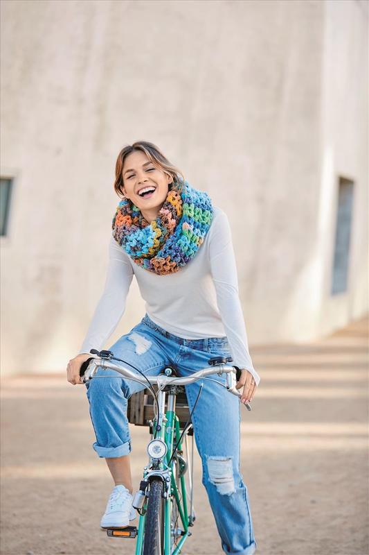 Häkel dir einen kuschelweichen Loop im aparten Jasmin-Blütenmuster.