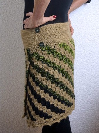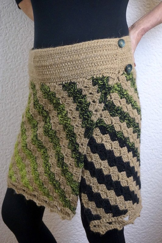 Das schöne ist, dass jedes Garn verarbeitet werden kann. Also könnt Ihr Euch den Rock in einer Sommer und Winter Version häkeln.
