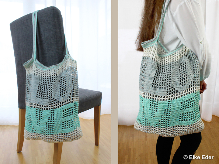Durch das Filetmuster ist die Tasche schnell gehäkelt und auch eine schöne Geschenkidee.