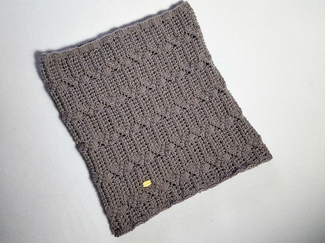 Maschenprobe: 10x10 cm = 21M 28R Verbrauch etwa 170g Maße: Umfang: 72cm Länge: 39cm
