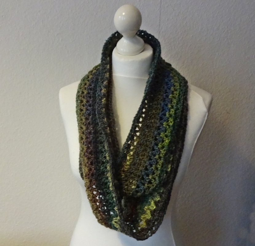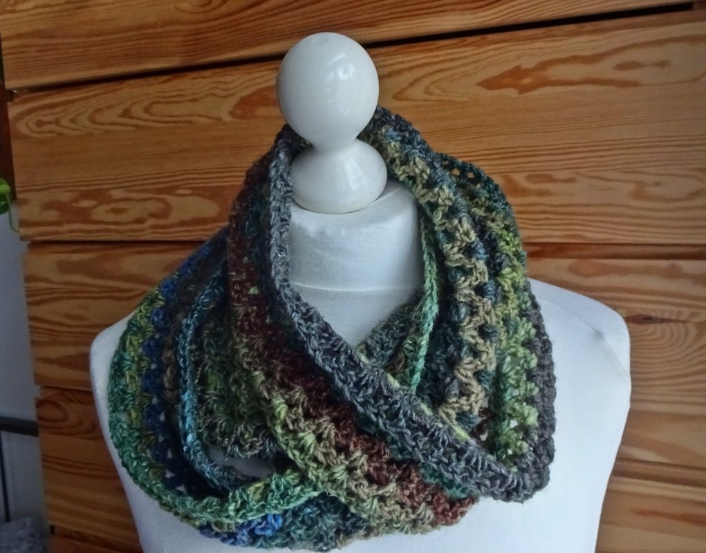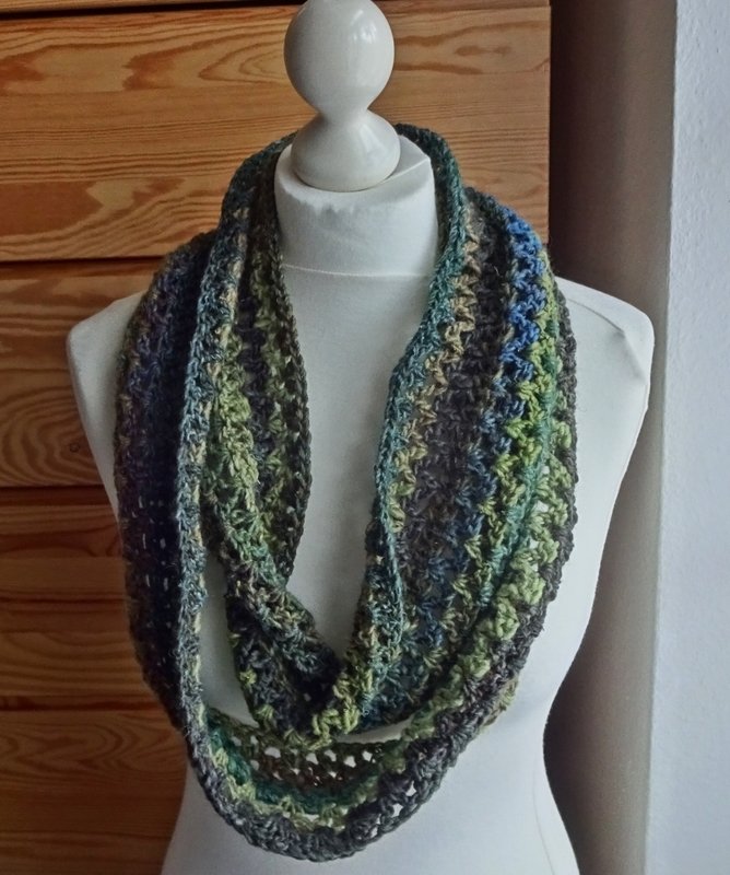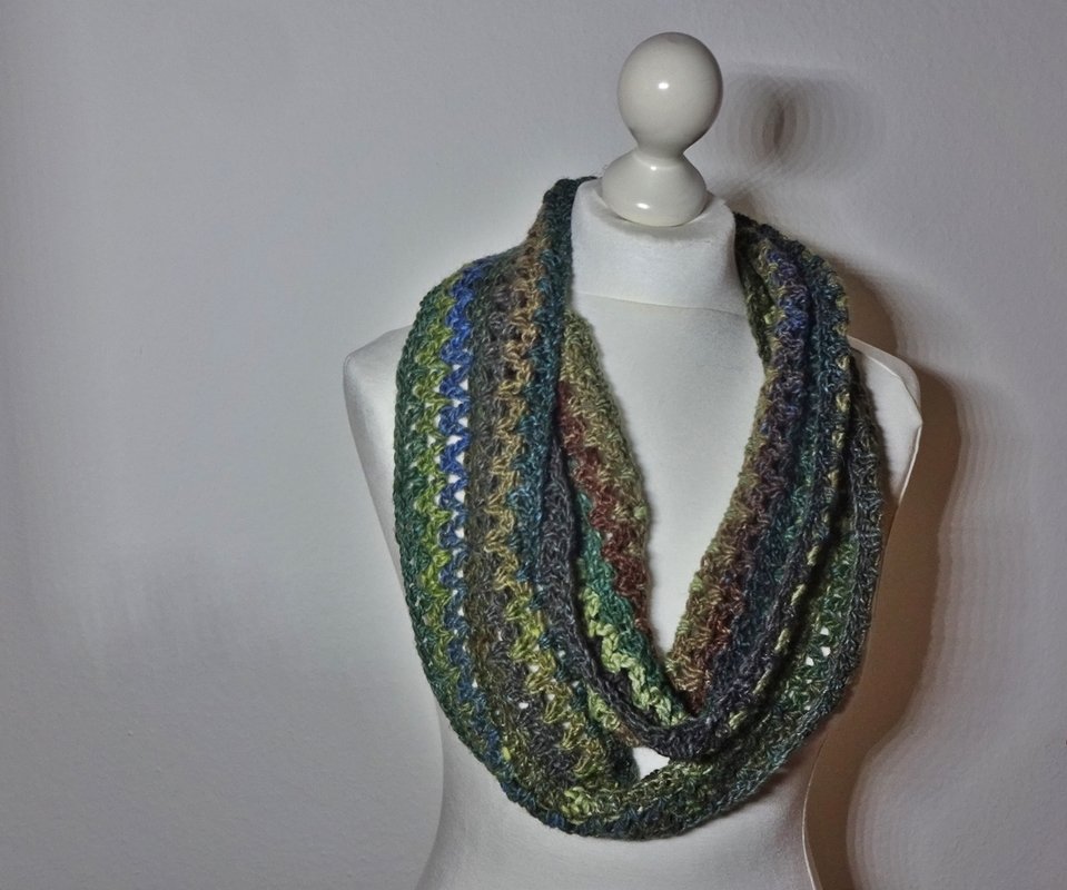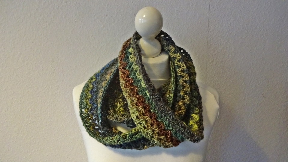 Ich habe hier für dich einen relativ schnell zu häkelnder Loop aus wenig Wolle.