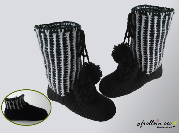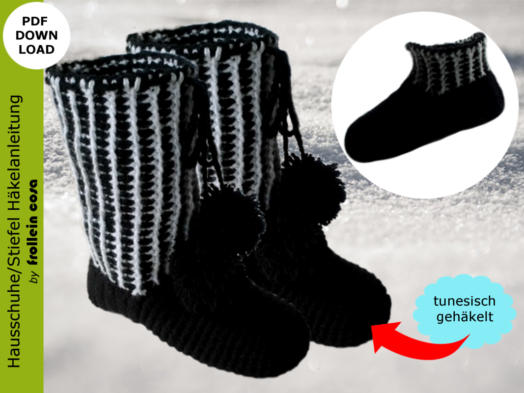 eBook # 37 HÄKELANLEITUNG Hausschuhe/Hausstiefel tunesisch gehäkelt