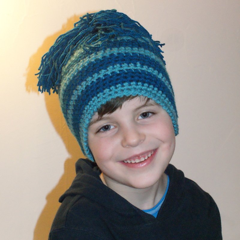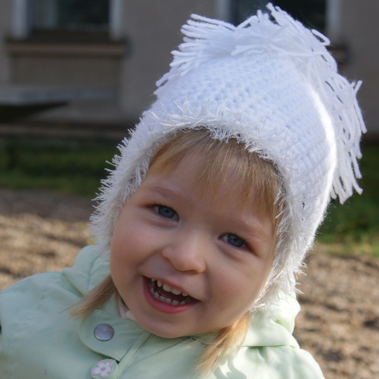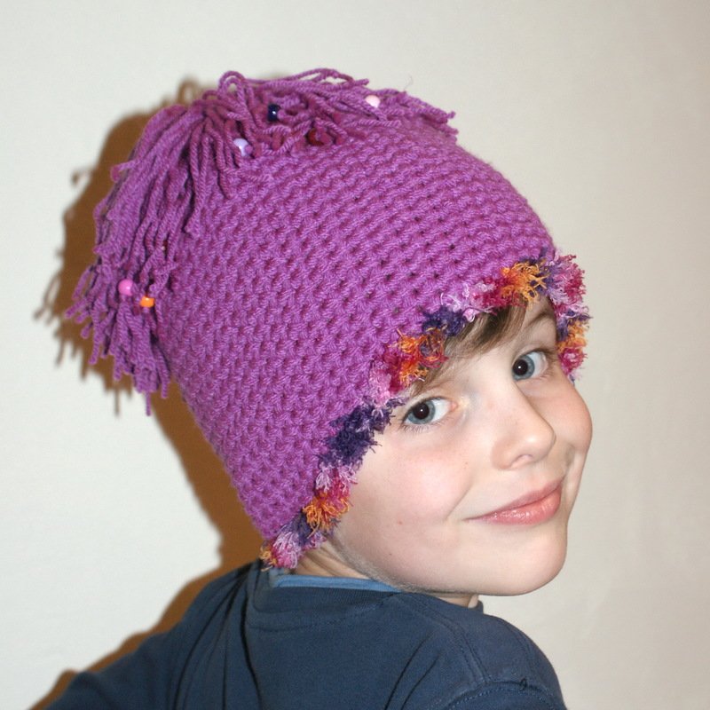 Die Mütze ist eines der ersten Teilchen in der Leomaxi Kollektion, sie ist durch die große Bommel und den Flauschrand sehr beliebt bei den Mädchen, auch mit einem anderen Abschlussrand auch für Jungs geeignet.