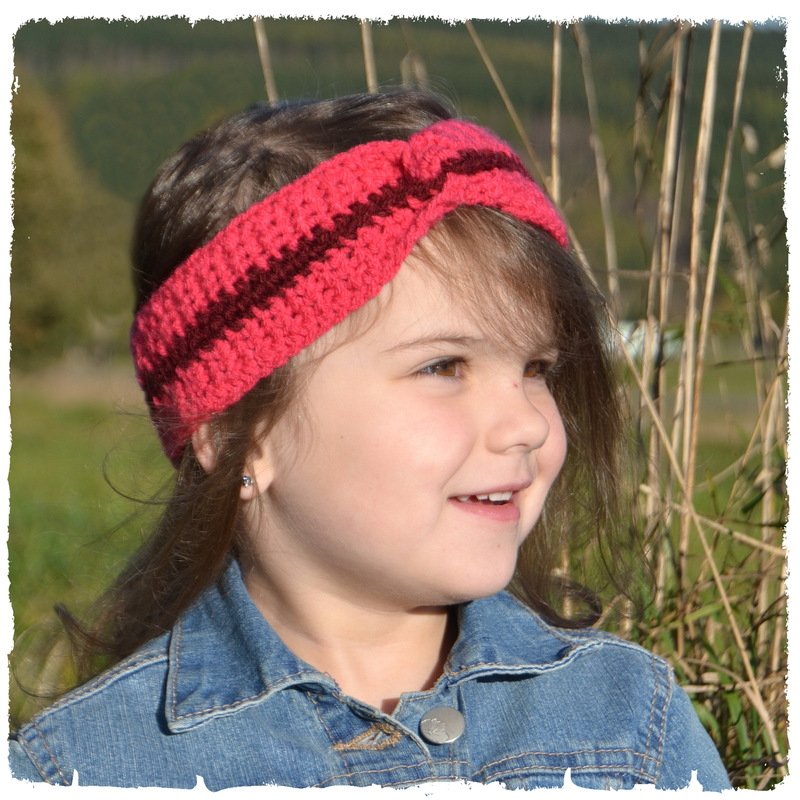 Das Haar- bzw. Strinband hält die Haare aus dem Gesicht und wärmt die Ohren, deshalb ist es sowohl ein Schmuck- als auch ein Wärmeteilchen perfekt für kleine und große Mädels. Es ist ganz einfach gehäkelt aber durch die raffinierte Knotung sieht es extravagant und schwierig aus.