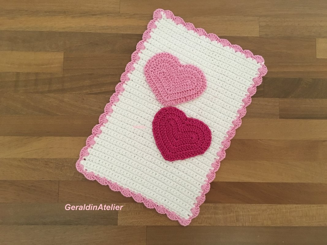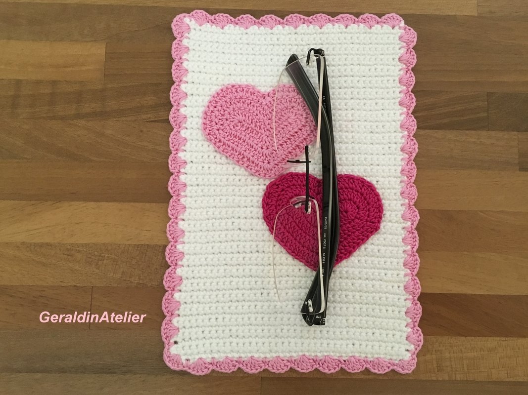 Die Ablage "Herzen" (Grösse: 13 cm x 19 cm) ist vielseitig einsetzbar und sehr funktionell. Als Ablage für das Telefon, Brille oder Notizenbuch. Für das Häkelzubehör, damit es immer eigegen Platz hat und schnell zu finden ist oder einfach um den Tisch oder das Telefon von Kratzern zu schützen. Bestimmt ist es als ein kleines Präsent/Geschenk für Valentinstag, Geburtstag oder den Muttertag geeignet.