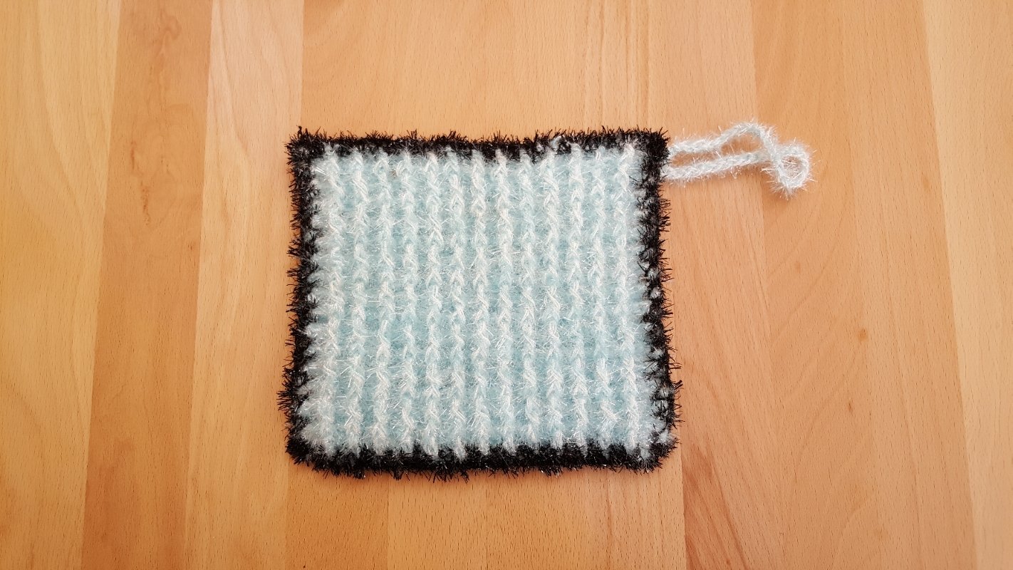 das Muster ähnelt dem Waffelmuster und kann auch sehr gut als Pullover Bund, Ärmel Bund oder als Kragen usw. genommen werden.