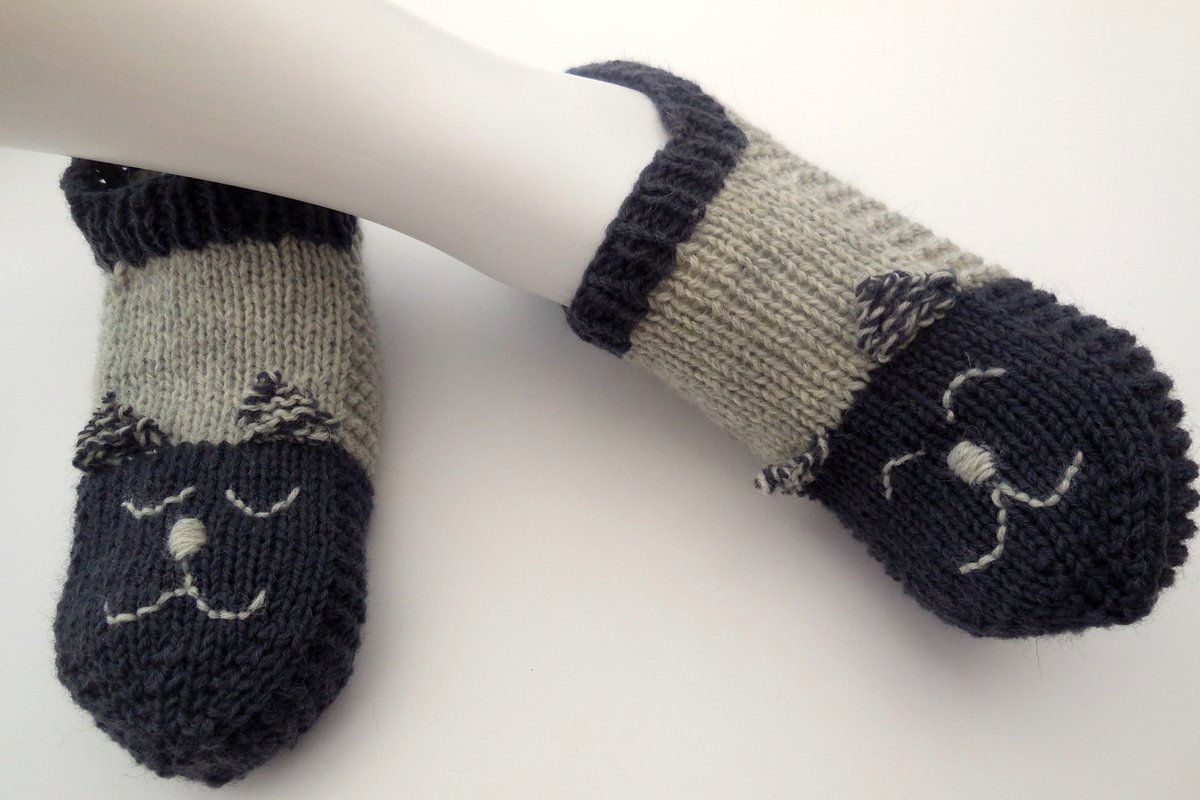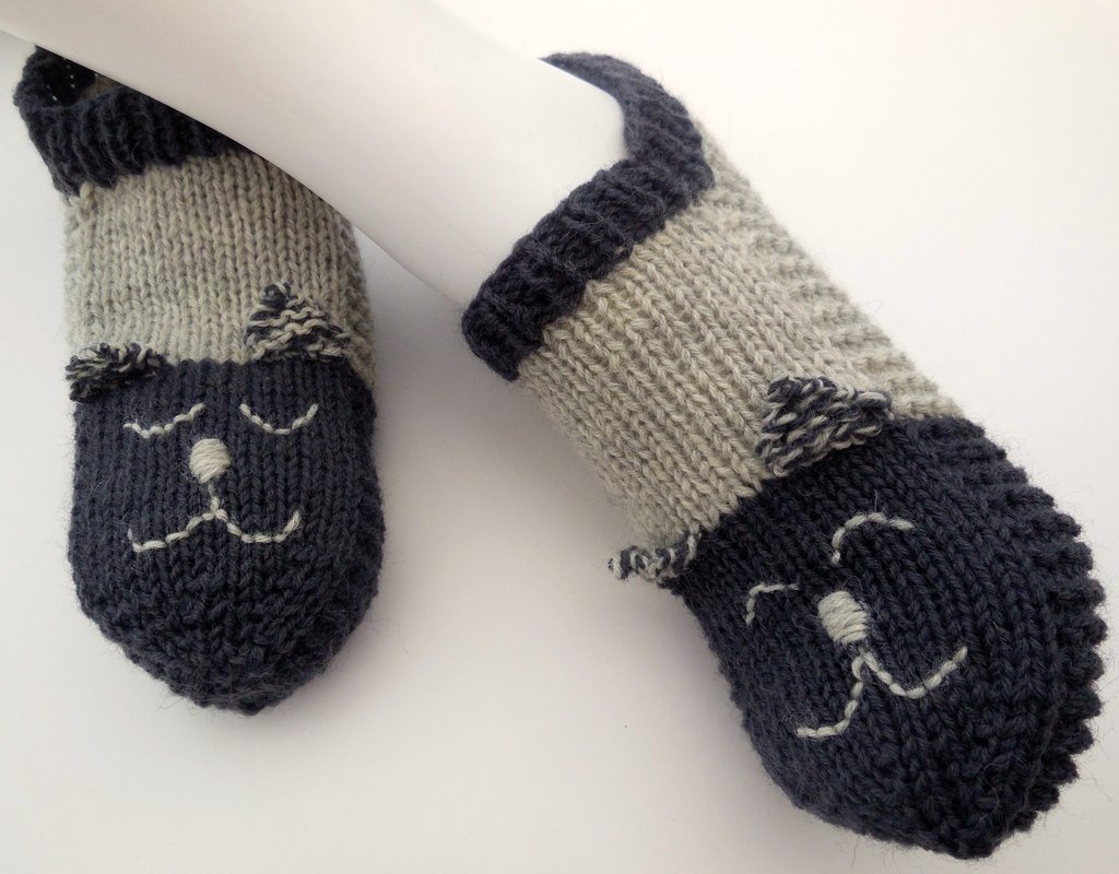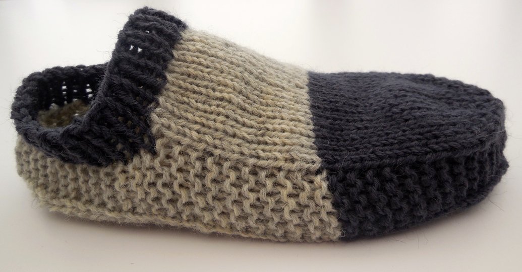 Sehr schnell, evtl. sogar aus Sockenwollresten zu stricken sind diese bequemen Hausschuhe/Sneakers/Haussocken. Man benötigt pro Paar nur ca. 50 g Wolle.