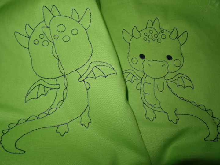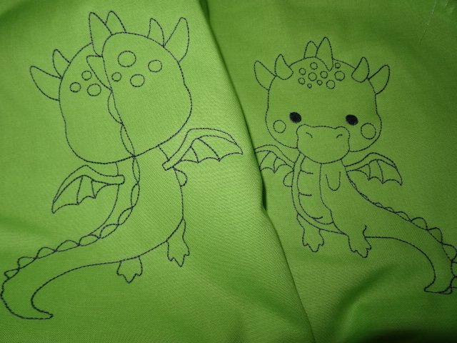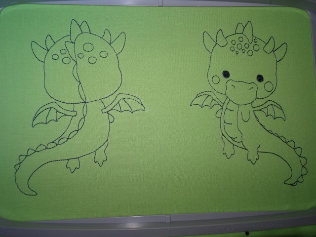 der süße Drache wird nur wie eine Zeichnung gestickt und ist somit schnell fertig ♥