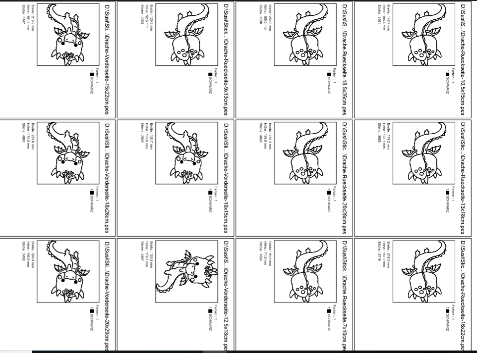 ♥ Stickdatei Redwork Drache Kurt in 7 Größen jeweils von Vorn und von Hinten ♥