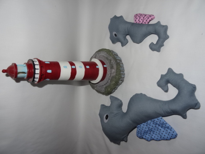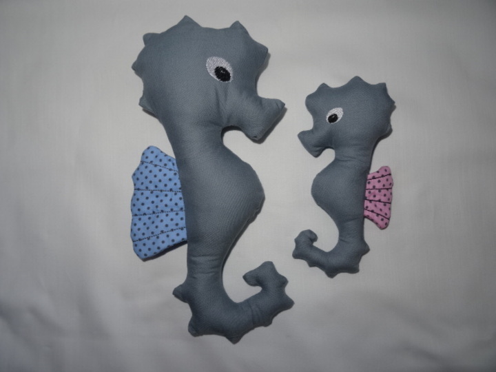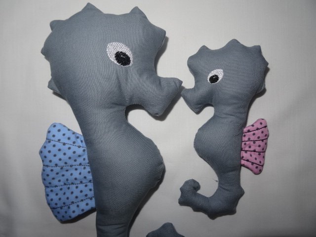 das Seepferdchen wird in 2 Arbeitsschritten komplett mit der Stickmaschine hergestellt ihr braucht nur noch das Wendeloch mit der Hand zunähen