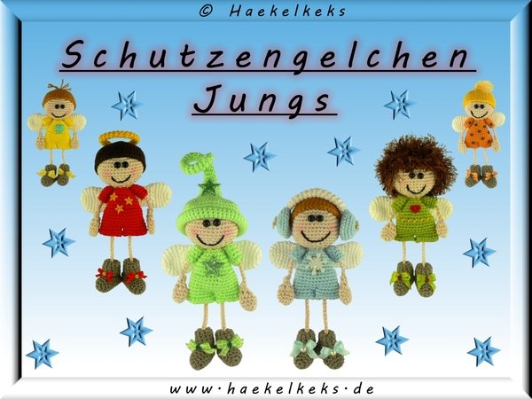 Wir verkaufen hier die passende, leicht verständliche und bebilderte Häkelanleitung zu den Schutzengelchen Jungs. Die Anleitung beeinhaltet die Beschreibung für alle, auf dem Bild, gezeigten Schutzengelchen.