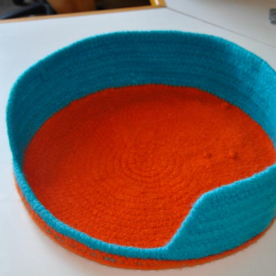 Dieser supercoole Katzenkorb aus Filzwolle ist in einem Nachmittag gehäkelt.