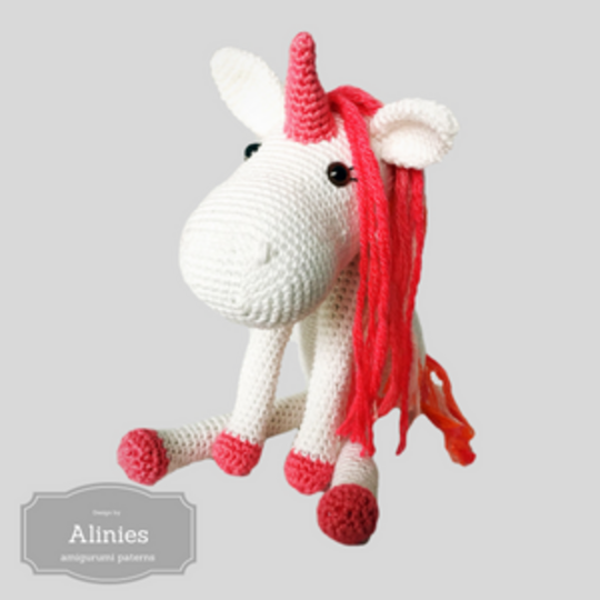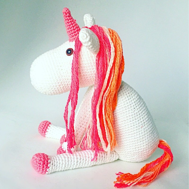 Häkelanleitung eines netten Einhorn als Pdf-Datei, klar beschrieben mit Fotos in