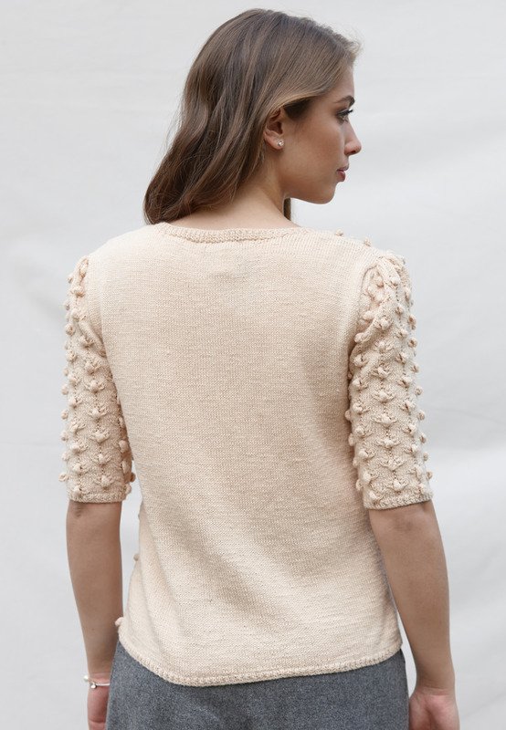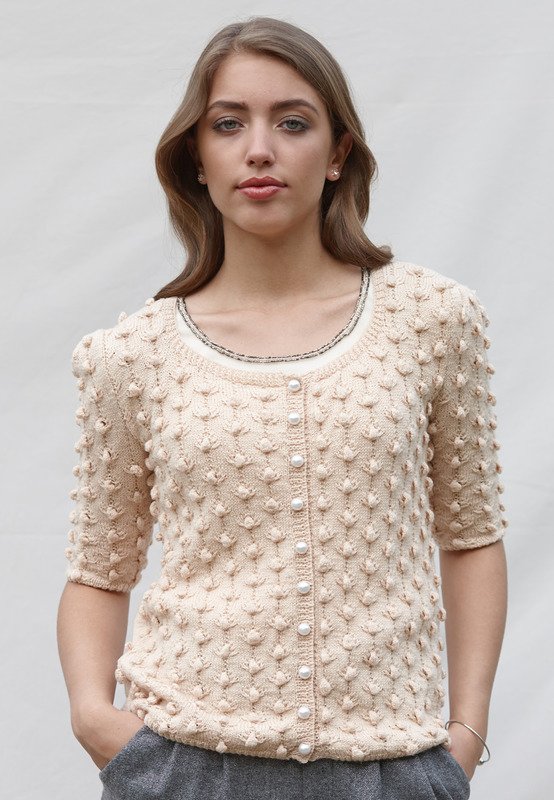 Was können wir tragen, wenn sich ein Tag nach Spätsommer, der nächste nach Herbst anfühlt? Eine Jacke mit Noppen, Perlenknöpfen, in einem sanften Nudeton. Passt dann perfekt und sieht hübsch aus!