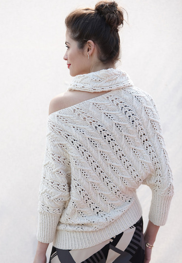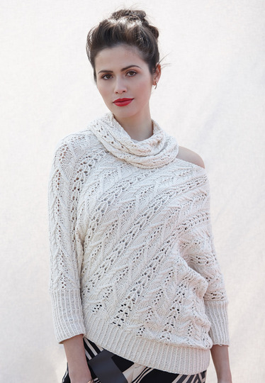 Definitiv ein Wow-Teil! Aufwendiger Mustermix, asymmetrische Form - eine außergewöhnliche Strickkreation, die mit passendem Loop für einen extravaganten Auftritt sorgt.