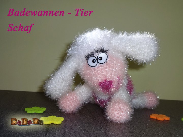 Das Bade-Schaf wird ungefähr; 20cm lang x 17cm breit, mit Ohren