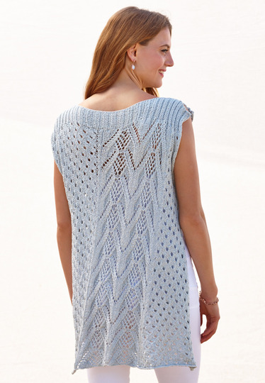 In neuem Look zeigt sich das klassische Chasuble. Dekorativ: der schräg verlaufende Ajourstreifen zu luftigen Lochmustern. Stylen wir zum Top wie zur Bluse: sieht immer perfekt aus!