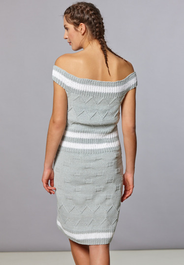 Kleider wissen sich immer wieder ins Spiel zu bringen! Ein klarer Stil-Gewinner ist dieses schulterfreie Kleid mit typischen Sportswear-Streifen und einem dekorativen Mustermix.