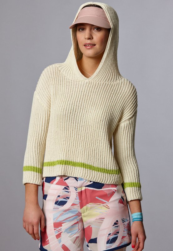 Lockerer Stil, moderne kurze Form und im Patentmuster gestrickt ist dieser Kapuzenpullover unser liebster Partner für unkomplizierte Streetwear-Looks.