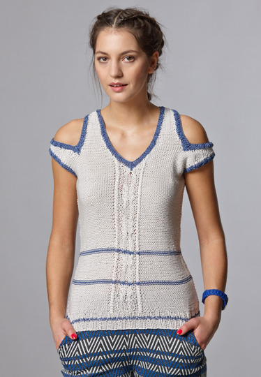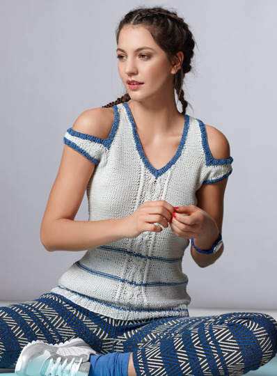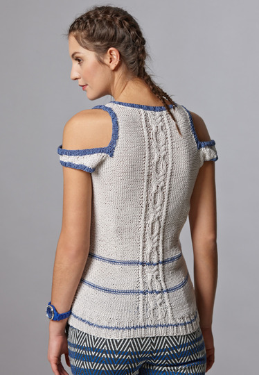 Lana Grossa "Classico" (100% Baumwolle, mercerisiert, LL ca 110 m/50 g): ca 250 (300-300) g Hellgrau Fb 20, ca 50 g Blau Fb 29; addi-Stricknd 4 mm und 4,5 mm, addi-Rundstricknd 4 mm, 40 cm lang, addi-Nadelspiel 4 mm.