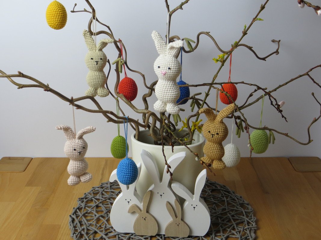Häkelanleitung für kleines Häschen und Eier, Osterdeko