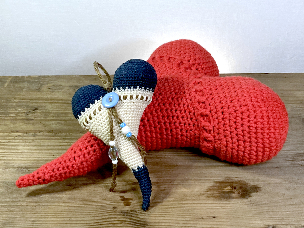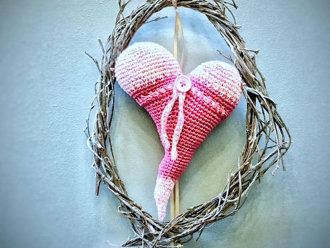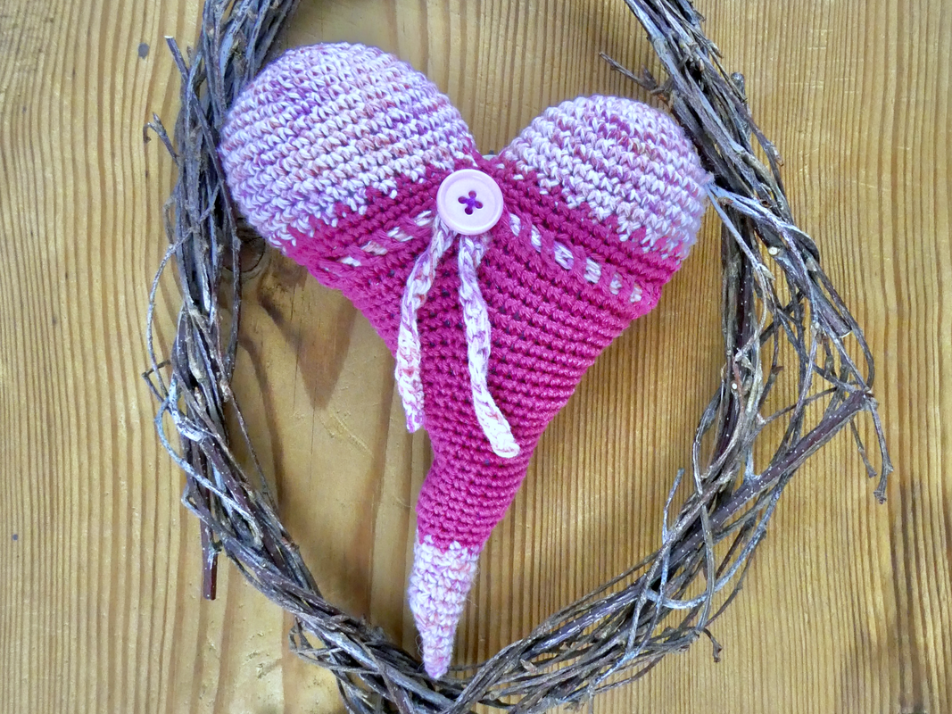 Gehäkelt mit Nadelstärke 2,5 wird das Herz ca. 17 cm groß