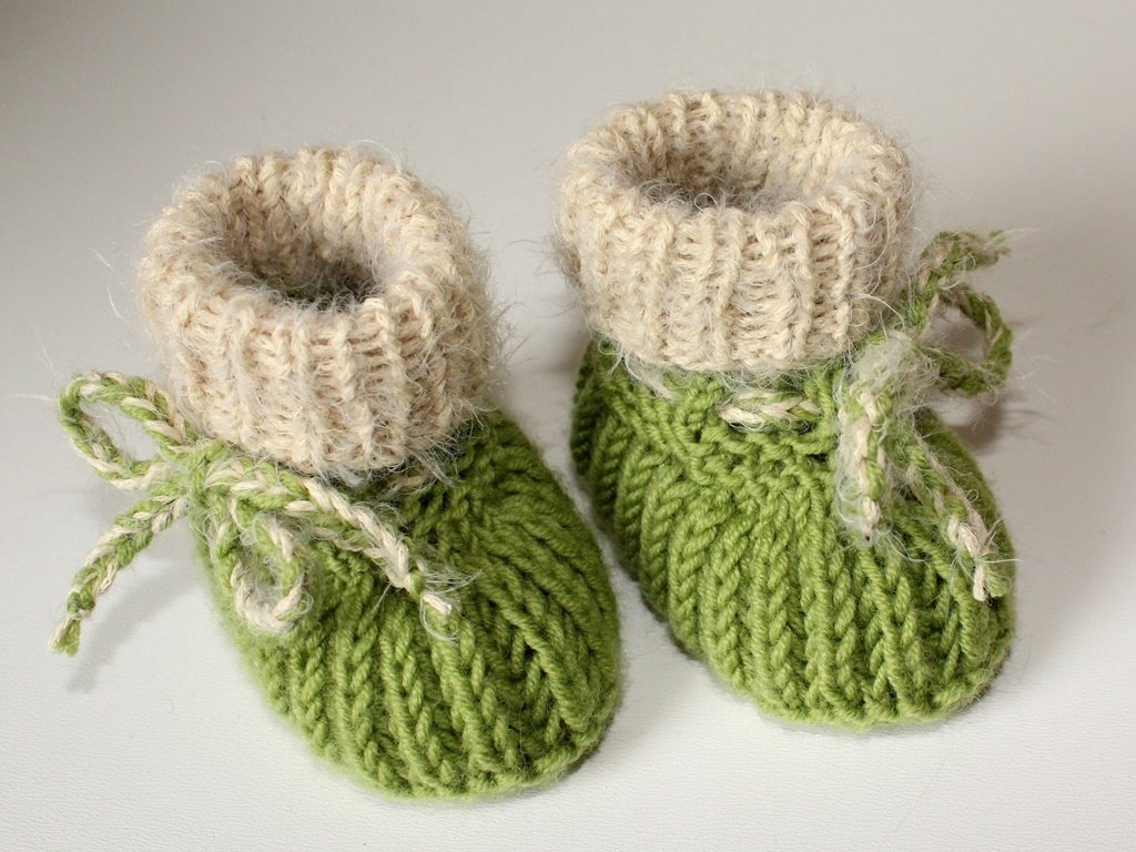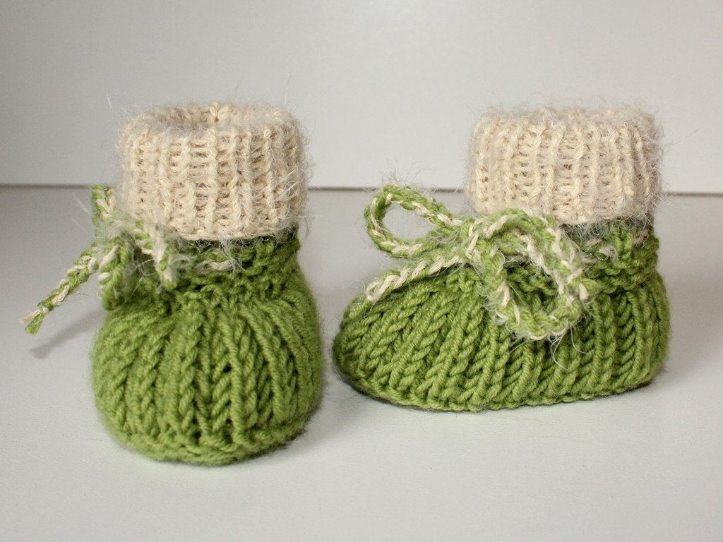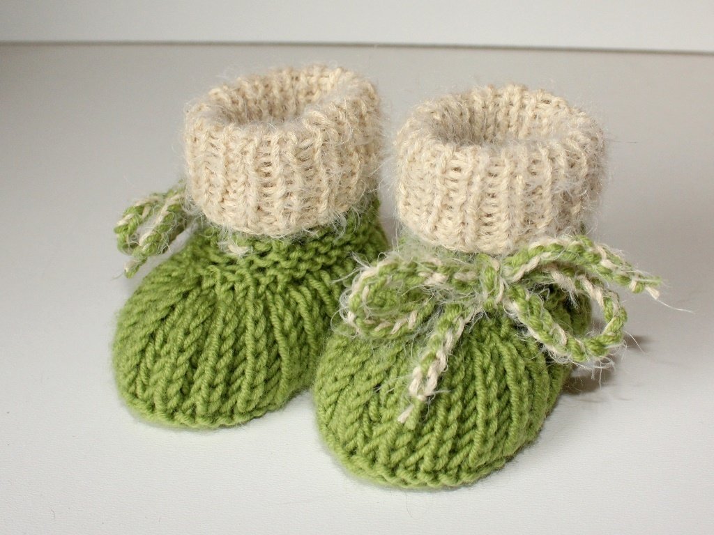 Strickanleitung Babyschuhe, Booties im Patentmuster, Sohlenlänge 9 cm