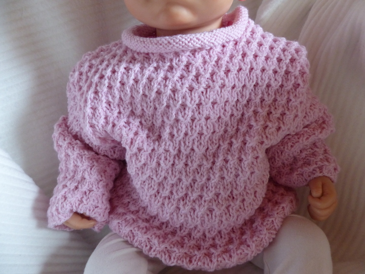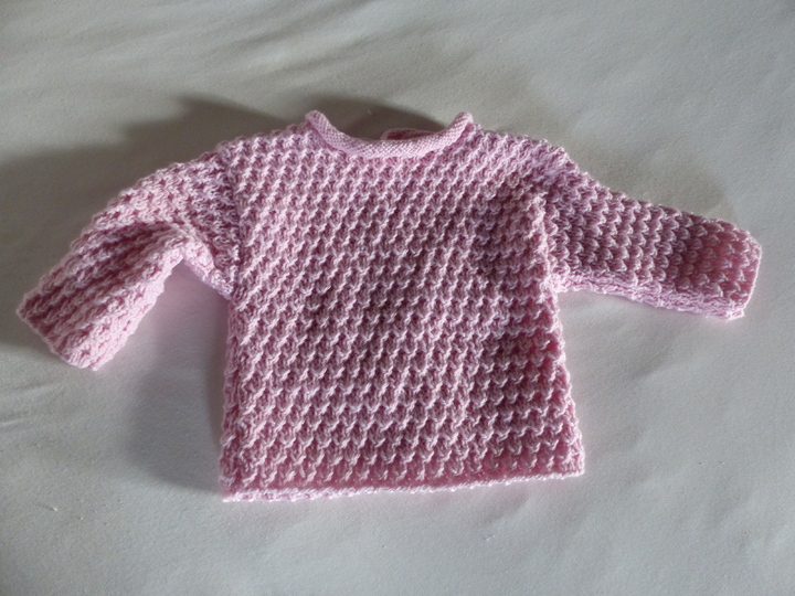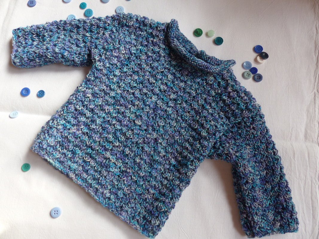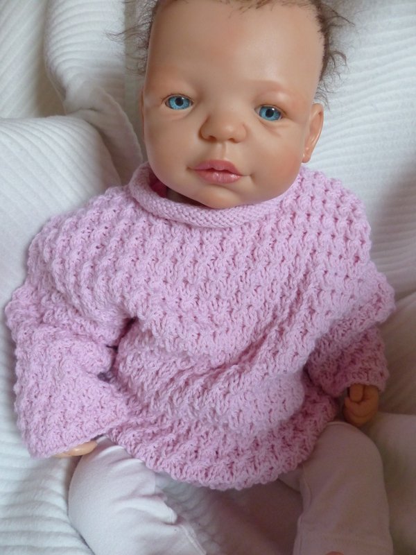Gestrickt habe ich die Pullover mit dem Garn Patons Baby Smiles Fairytale Dreamtime 4ply 85 m / 25 g und dem Garn Schachenmayr Baby Smiles Merino Wool 85 m/25 g. Verbrauch waren ca. 150 Gramm. Ich habe mit Nadelstärke 3 gestrickt.