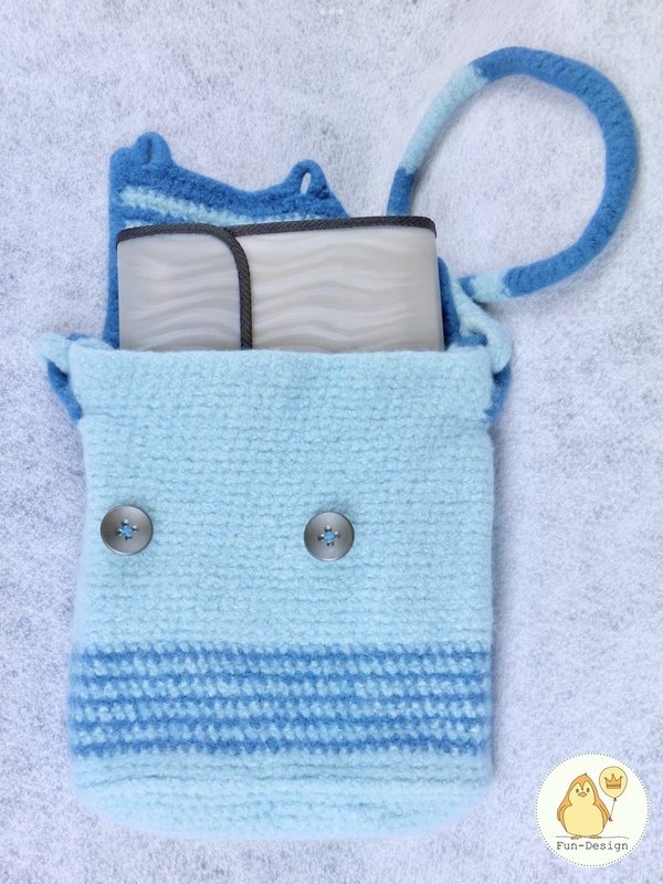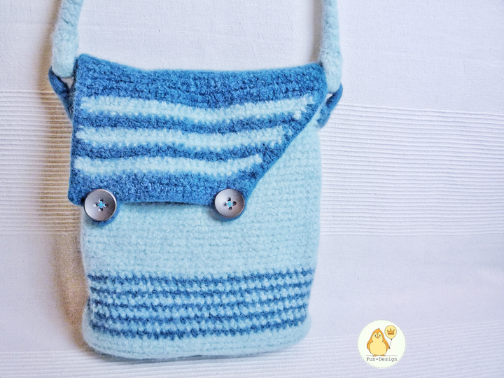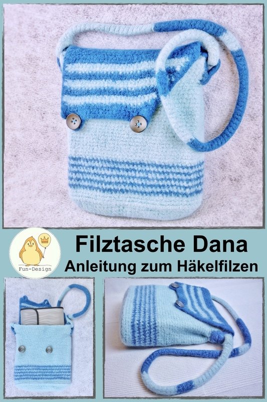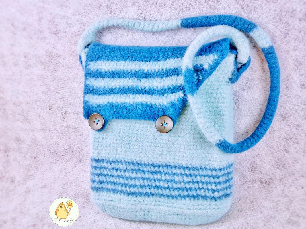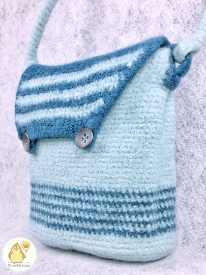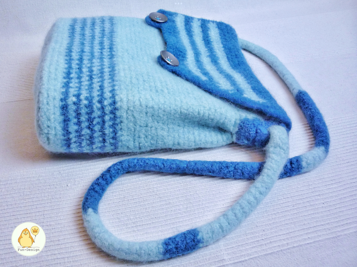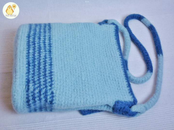 Diese Tasche wird zuerst mit Filzwolle gehäkelt und dann in der Waschmaschine gefilzt.