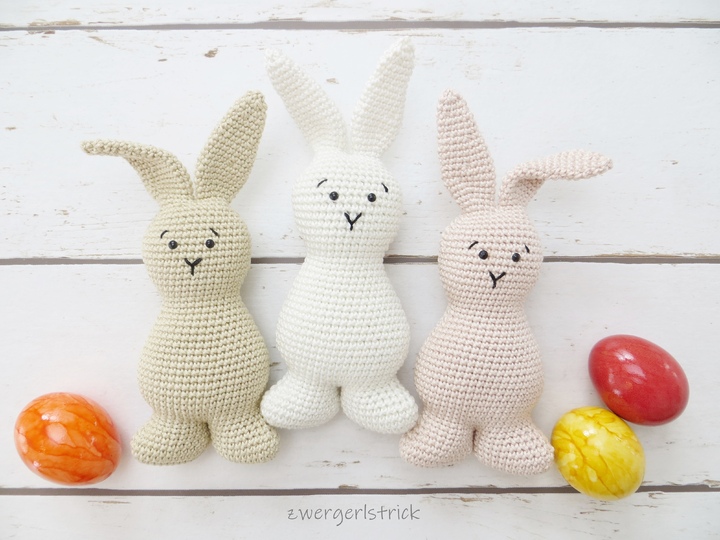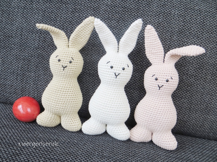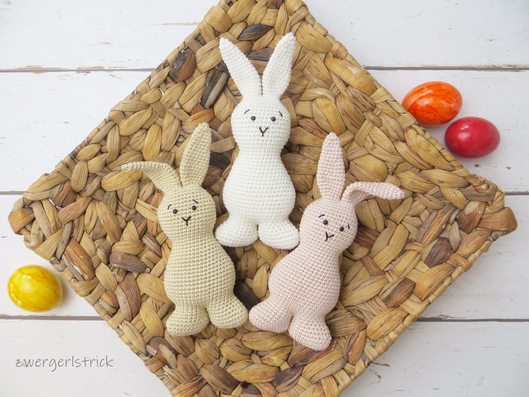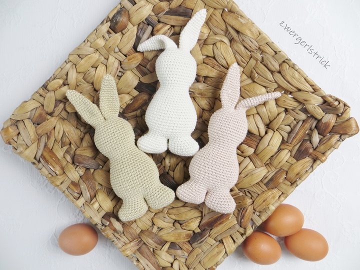 Einfach in einem Stück sind diese Moppelhäschen recht schnell gehäkelt und das Annähen einzelner Teile bleibt erspart.