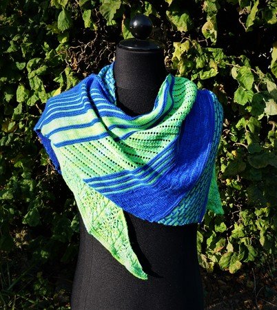Er wird mit 200g FMS von Lanartus gestrickt (420m LL auf 100g), gefärbt vom Wollfeuerwerk.