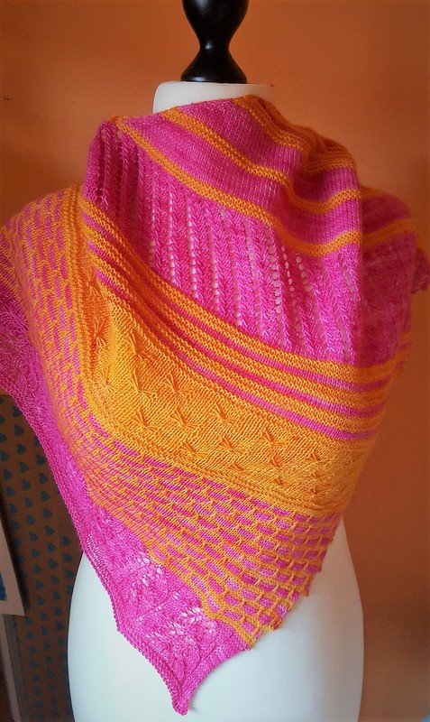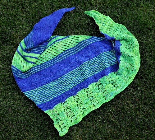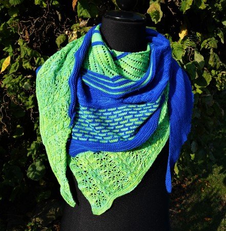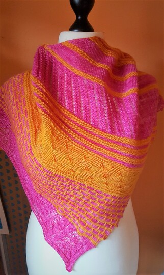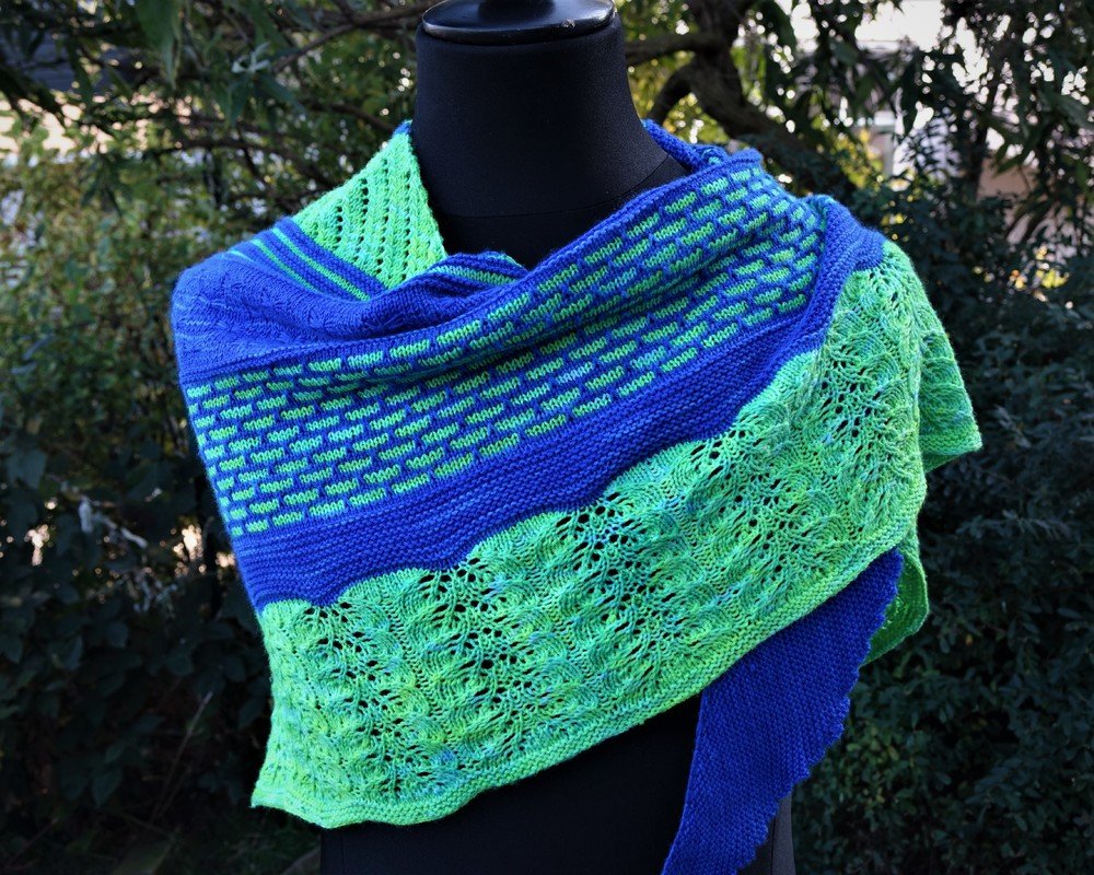 Das Tuch erhält seine Form durch kfb und wenigen Abnahmen an der entgegengesetzten Seite.