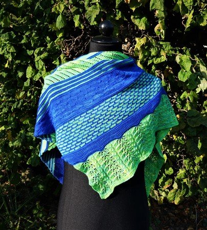 Ich habe viel mit glatt und kraus re gearbeitet um die Farben wirken zu lassen. Die einzelnen Muster sind ausführlich Zeile für Zeile erklärt und auch mit Chart dargestellt.