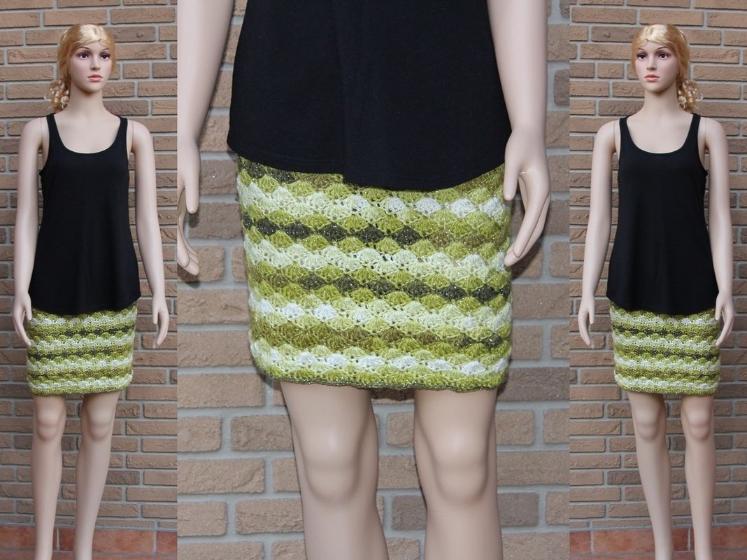So ist dieser wunderschöne Rock im Muschelmuster entstanden, der in allen Größen toll aussieht, wie man an meinen großartigen Probehäklerinnen erkennt, die den Rock in den Größen 40/42, 44 und 46 getestet haben.