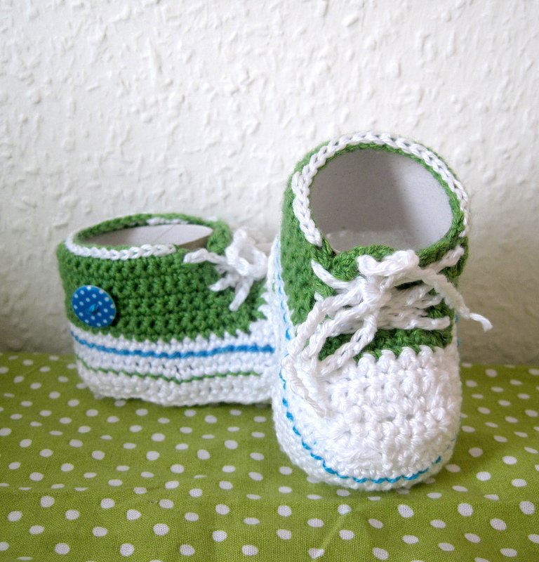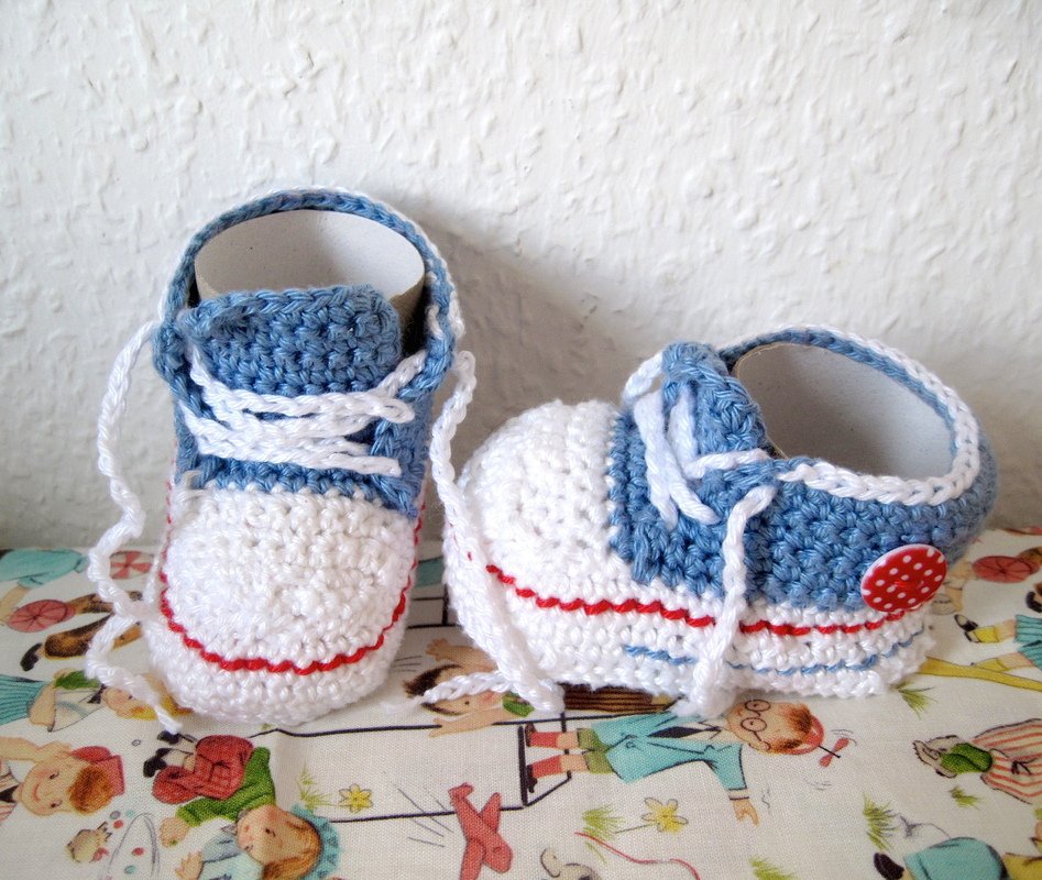 In dieser Anleitung wird ausführlich erklärt wie Anfänger, Fortgeschrittene und Profis die Schuhe in Gr. 17 (3-6 Monate) selbst häkeln können.