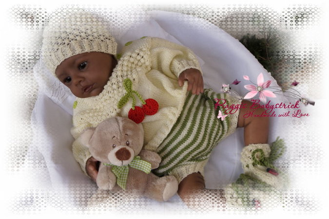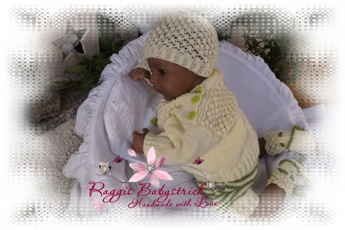 Strickanleitung für ein wunderschönes Set, 4-teilig für Babys & Reborns, Gr. 48 - 54 Das Set ist aus Babysoftwolle Nd. - Nr. 3 gestrickt. Die Anleitung ist sehr genau beschrieben und mit vielen Fotos. Auch ohne viel Strickerfahrung kannst Du mit dieser Schritt – für – Schritt – Anleitung diese Set leicht nacharbeiten.