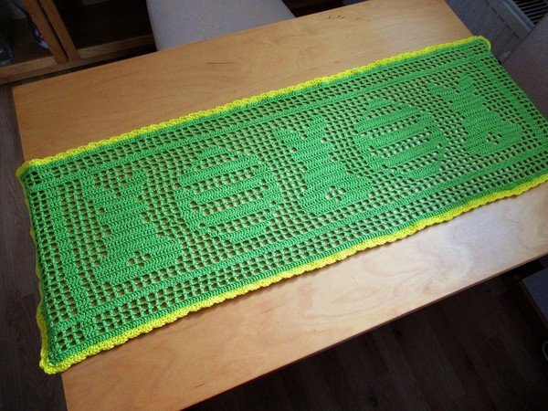 Gerade zur Osterzeit liebt man frische Farben! Dieser gehäkelte Tischläufer mit Hasenmotiv bringt Farbe ins Wohnzimmer. Er ist in Filettechnik gehäkelt. Durch das Lochmuster geht die Arbeit schnell von der Hand.